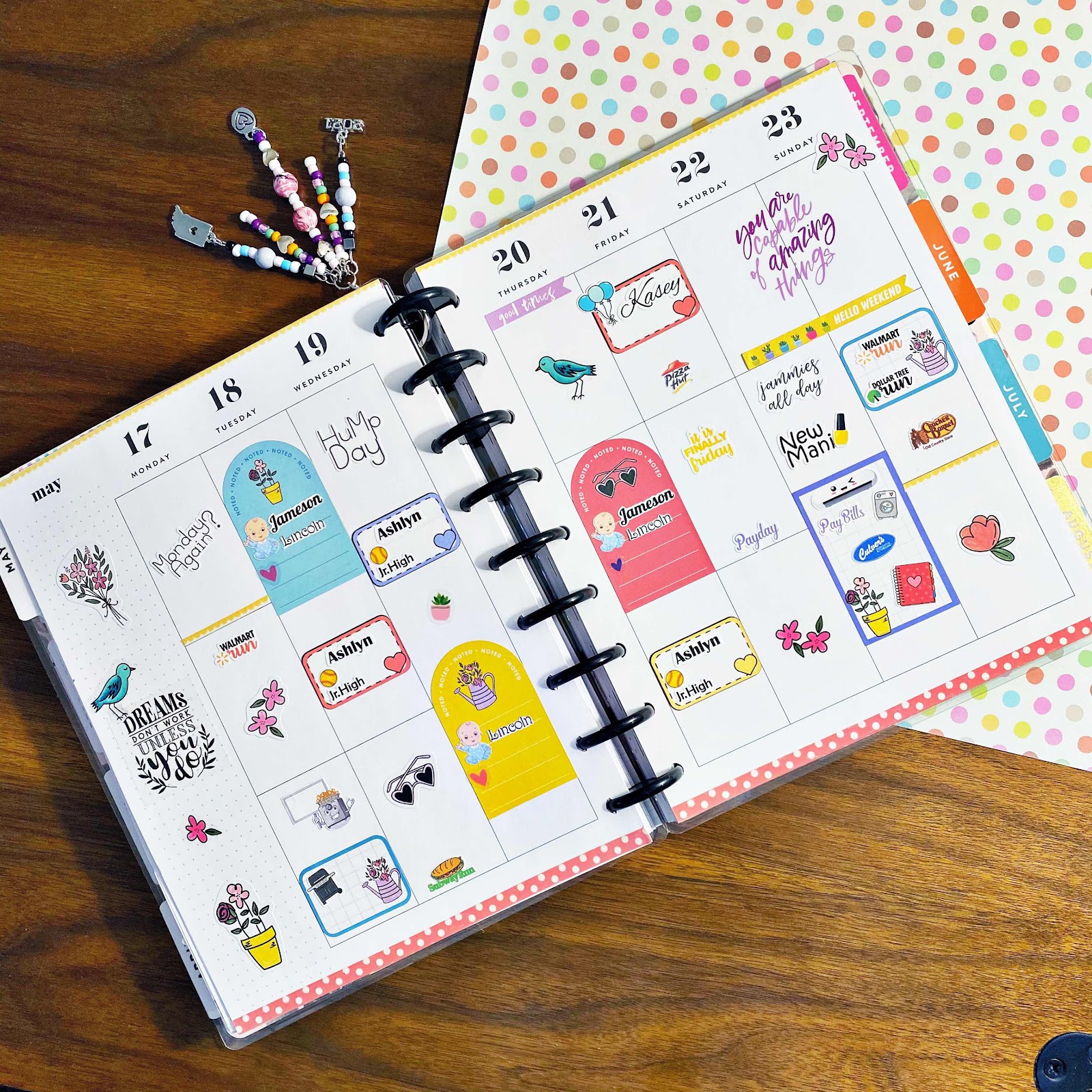 I enjoyed creating this weekly spread in my Define Your Purpose Classic Happy Planner.  I used mostly the Spring sticker book from MAMBI for The Happy Planner.  I also used several stickers from sticker shops. I also love my planner charm.  I originally had the Miss Maker cover on this planner, so I matched the colors to make this charm.  I do have several beaded planner charms in my Etsy Shop, Indiana Inker Plans.  I rarely make 2 a like, so there is only 1 available of each one listed.