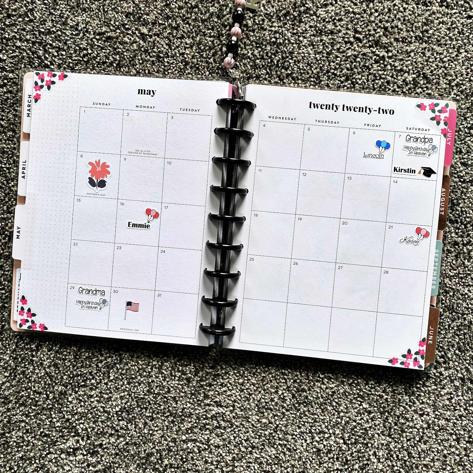 I went very simple with the May Monthly spread in my Classic Happy Planner. I really don’t use the monthly spread, so some months I decorate a lot and others I don’t.